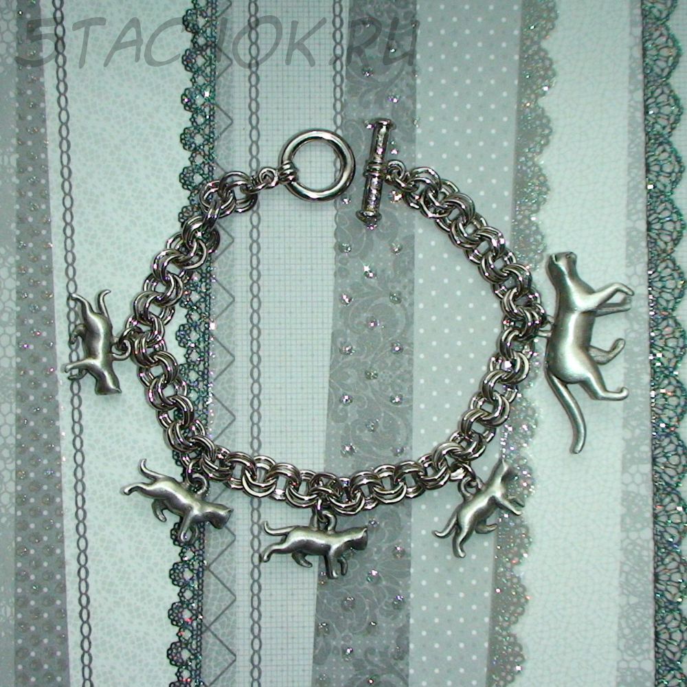 Милый оригинальный браслет! Мама кошка на прогулке со своими малышами!