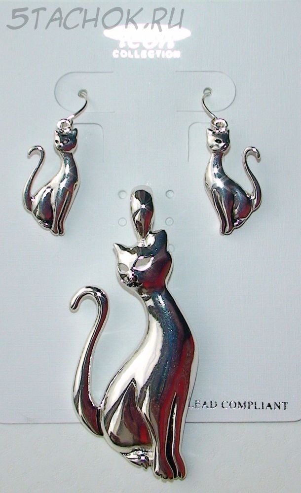 Набор Серьги и Подвеска "Элегантная кошка" под серебро