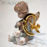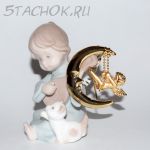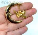 Красивая и редкая брошка! Выполнена под блестящее и матовое золото. Ангелочек катается на луне на качелях. Малыш имеет подвижность относительно луны.