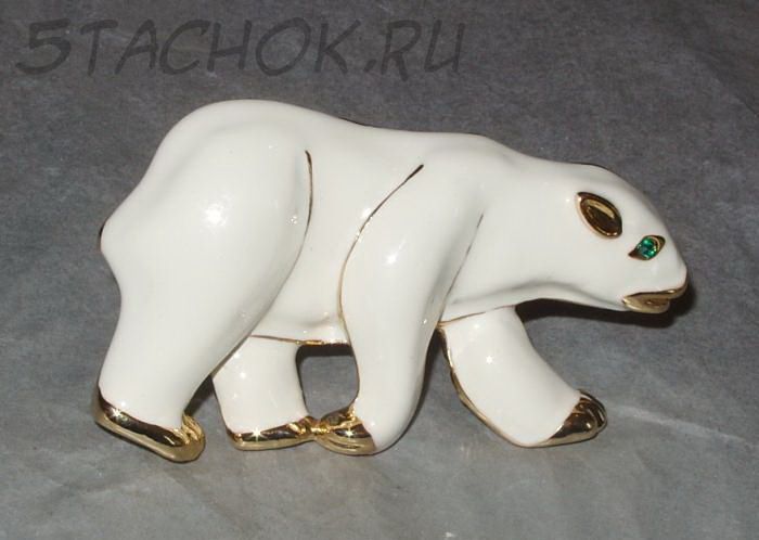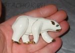 Брошь "Белый медведь" под золото, ювелирная эмаль