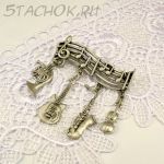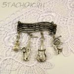 Брошь "Музыкальные инструменты" цвет олова (JJ США)