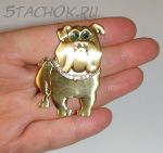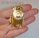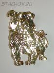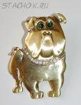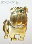 Брошь "Бульдожка с ошейником" под золото, камушки