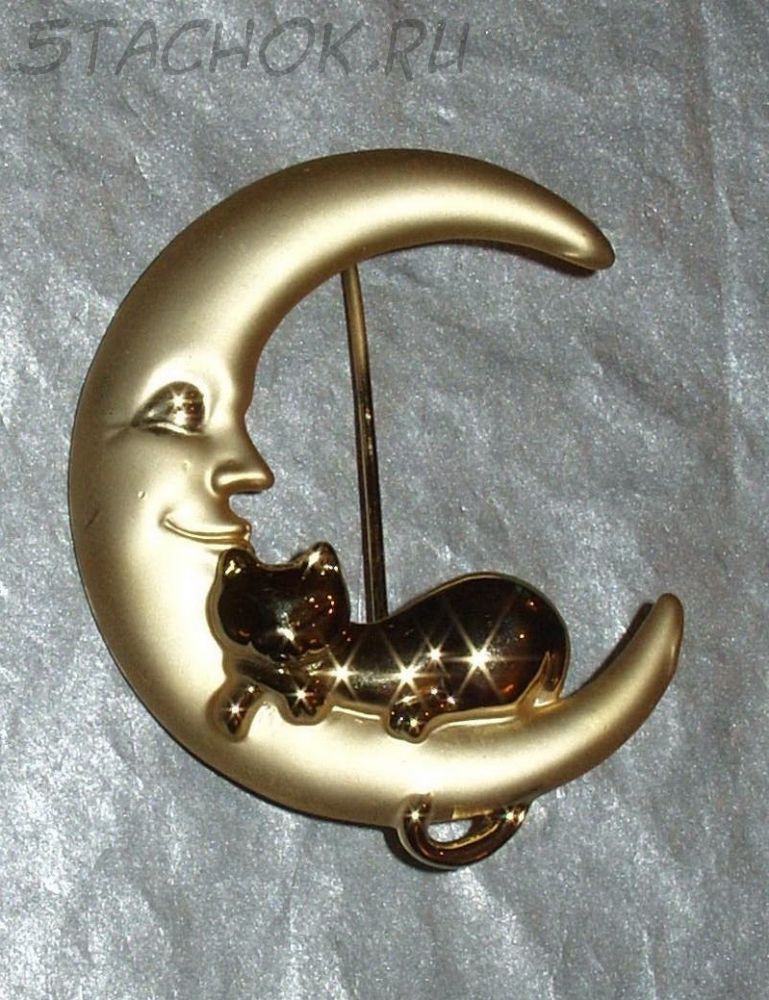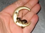 Брошь "Котик спит на луне" под золото (бесплатная доставка из США/Великобритании)