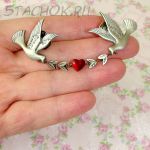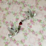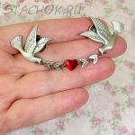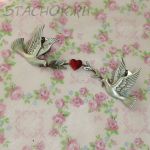Брошь "Голубки с сердечком" под олово, ювелирная эмаль