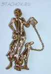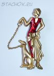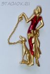 Брошь "Дама в красном с собакой" под золото/эмаль