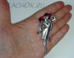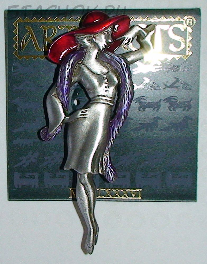 Брошь "Дама в шляпе и боа" под олово в цвете