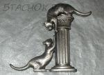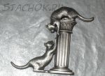 Брошь "Две Кошечки у пьедестала" цвет олова (JJ США)