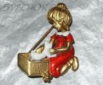 Брошь "Девочка и белый котенок" (Danecraft США)