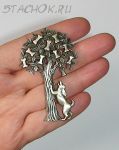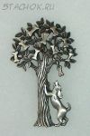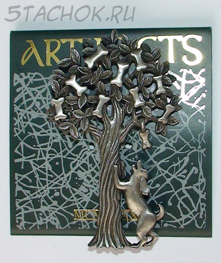 Брошь "Собачка и дерево с косточками" под олово