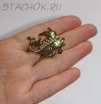 Рыбка выполнена в металле под блестящее золото с использованием маленьких перламутровых камушков под жемчужинки!
