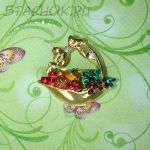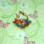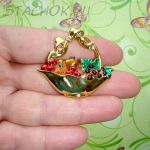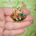 Брошь "Корзина с фруктами" под золото, эмаль, стразы