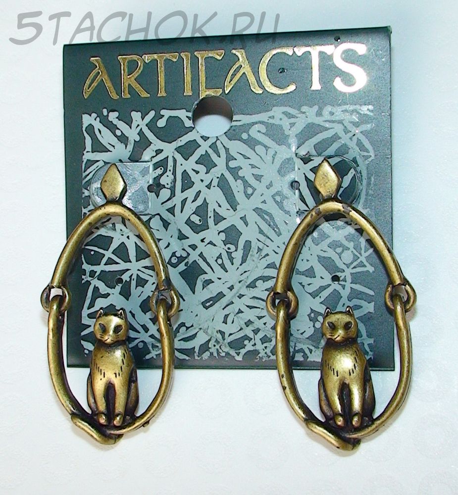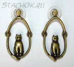 Серьги-гвоздики "Кошечка в обруче" под бронзу