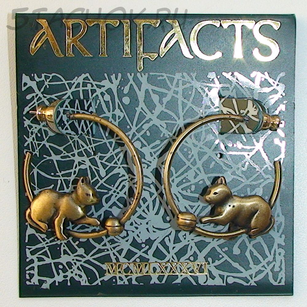 Серьги-кольца гвоздики "Котята и мячики" бронзу