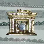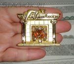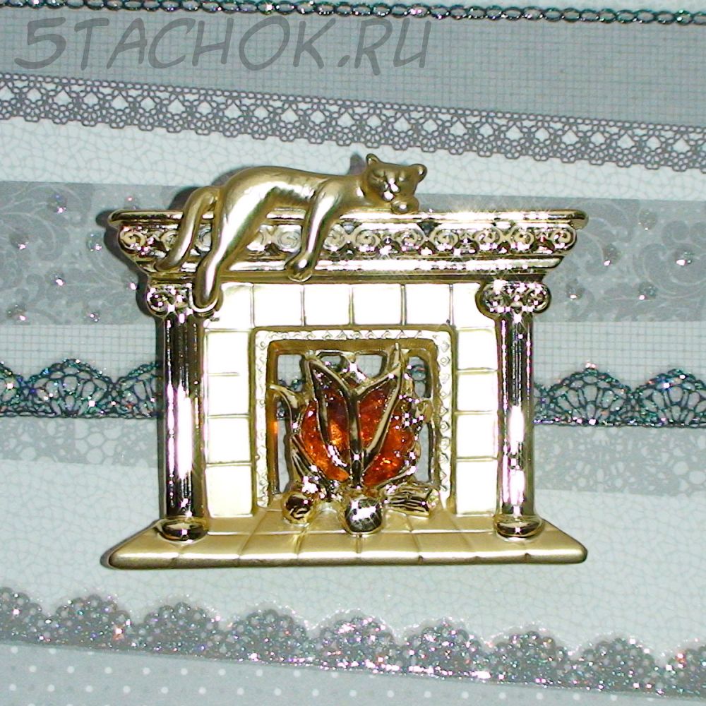 Брошь "Котик на камине" под золото, камень