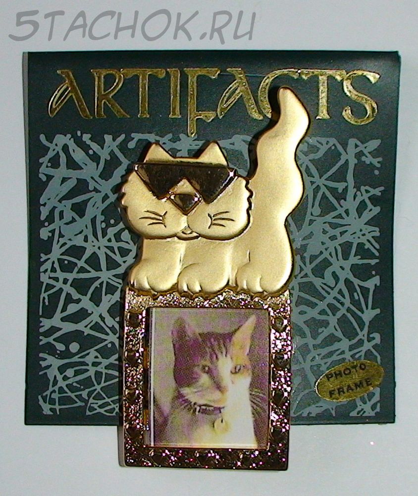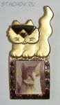 Брошь "Котик-рамочка" под золото