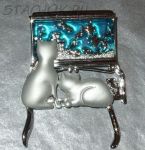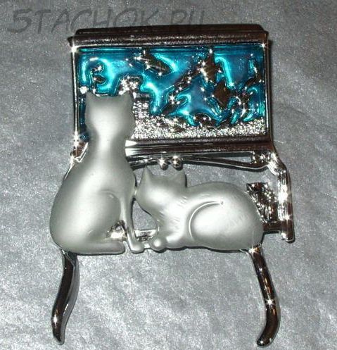 Очень редкая и очень красивая брошь! Любопытные котята наблюдают за рыбками в аквариуме и махают хвостиками...