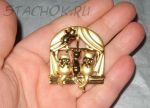 Брошь "Котята у окошка" цвет золота (AJC США)