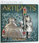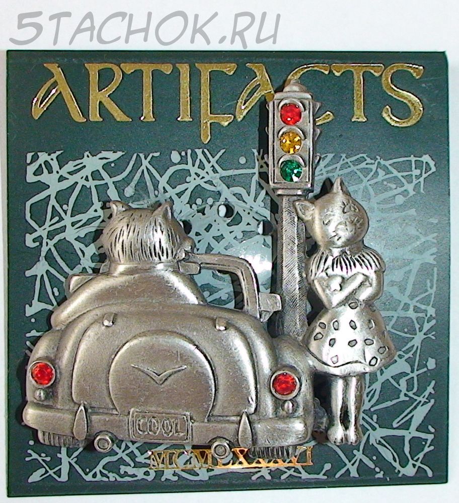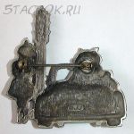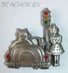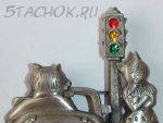 Брошь "Кот в лимузине и кошка у светофора" с цветными камушками под олово