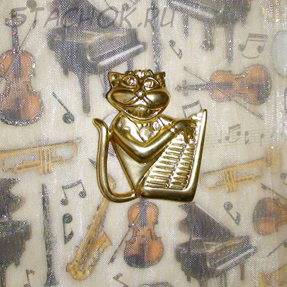 Брошь "Кот-клавишник" под золото