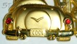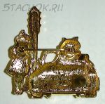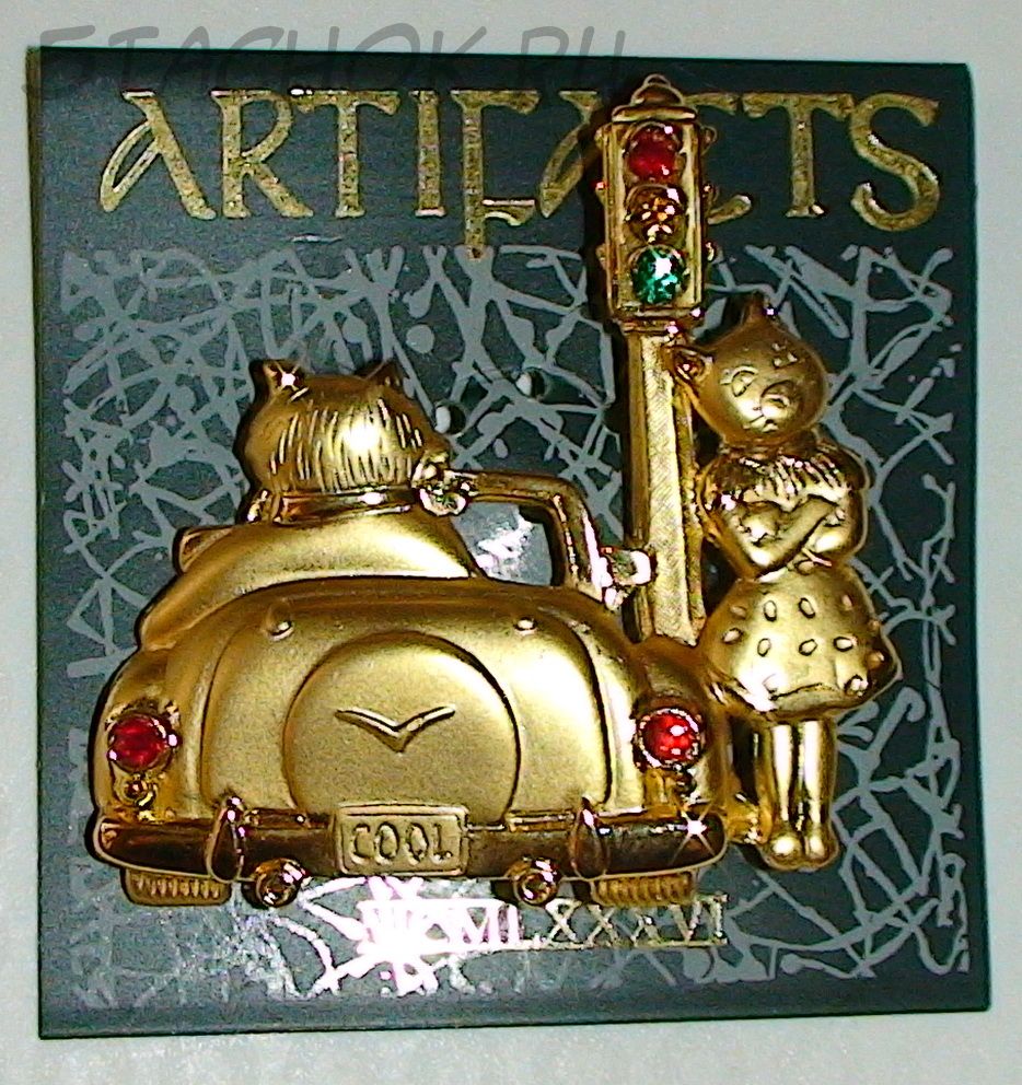 Брошь "Кот в лимузине и кошка у светофора" с цветными камушками под золото