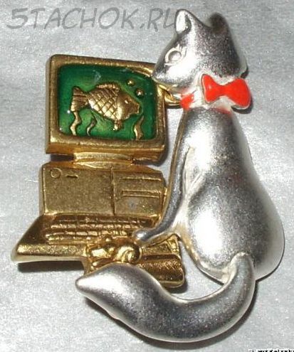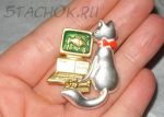 Брошь "Кошечка и компьютер"