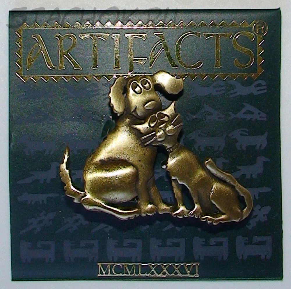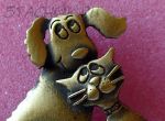 Брошь "Кот и Пес - лучшие друзья" под бронзу
