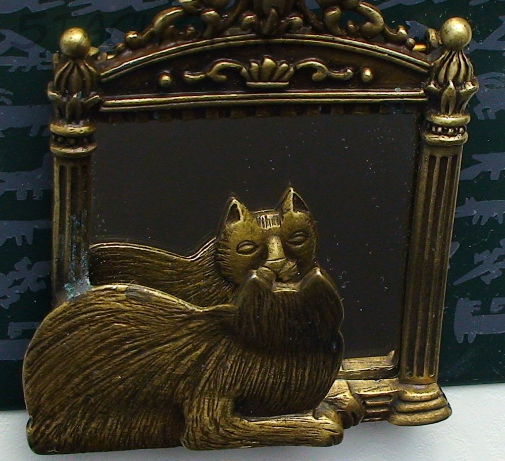 Брошь "Кошечка перед зеркалом" под бронзу