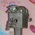 Брошь "Кошка на скворечнике" под олово