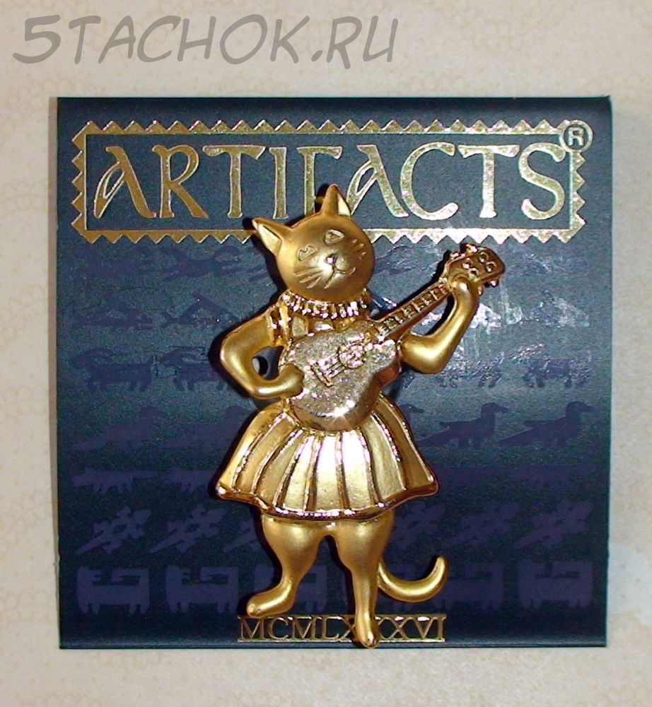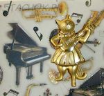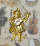 Брошь "Киса с гитарой" под золото