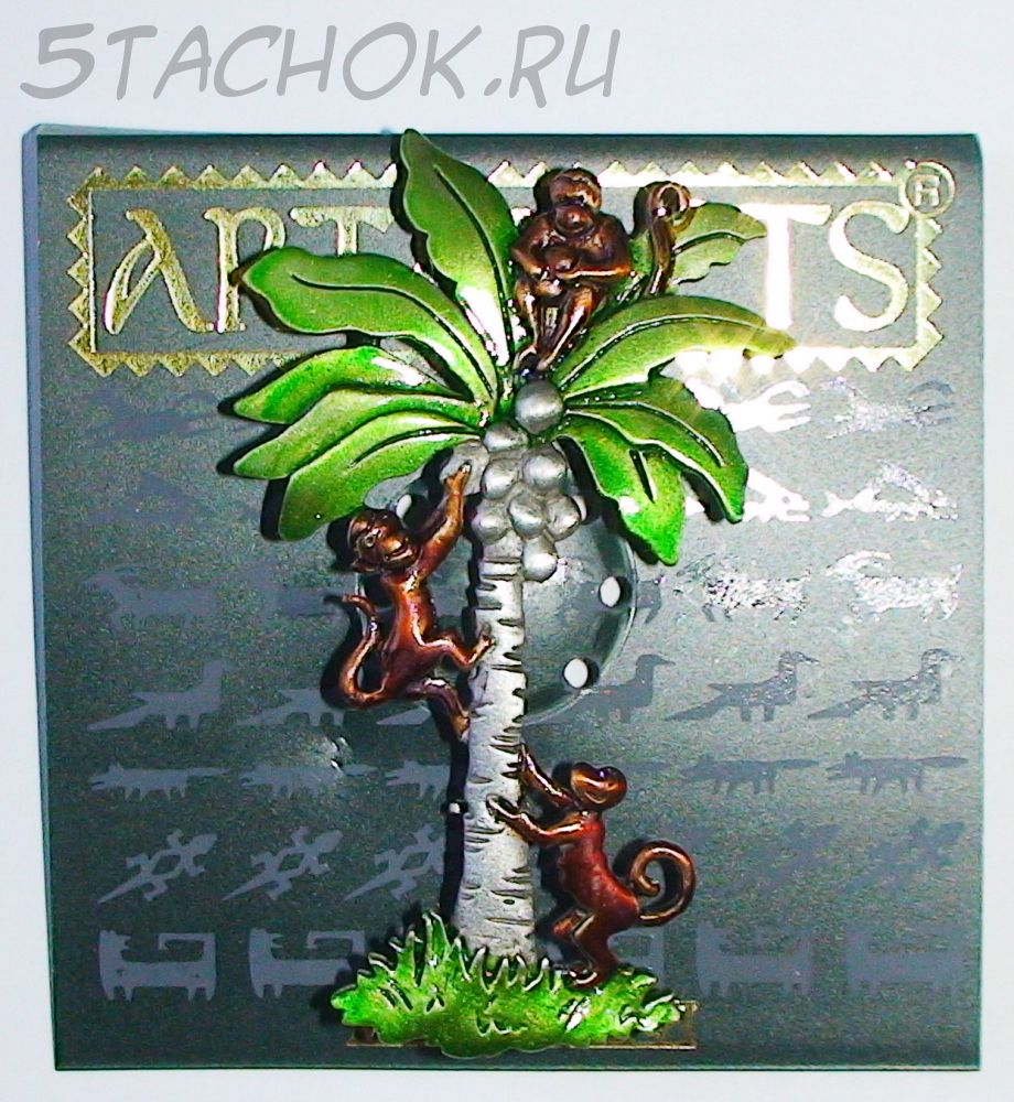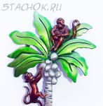 Брошь "Обезьянки на пальме" под олово, эмаль