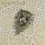 Прекрасная брошь из пьютера! Прорисованы все детали в мимике тигра. Очень выразительный взгляд приковывает к себе, оригинальная филигранная форма брошки.