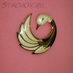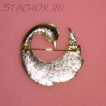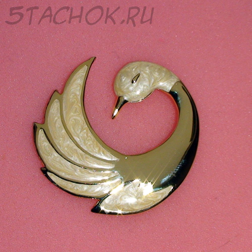 Брошь "Прекрасный лебедь" под золото/эмаль/перламутр