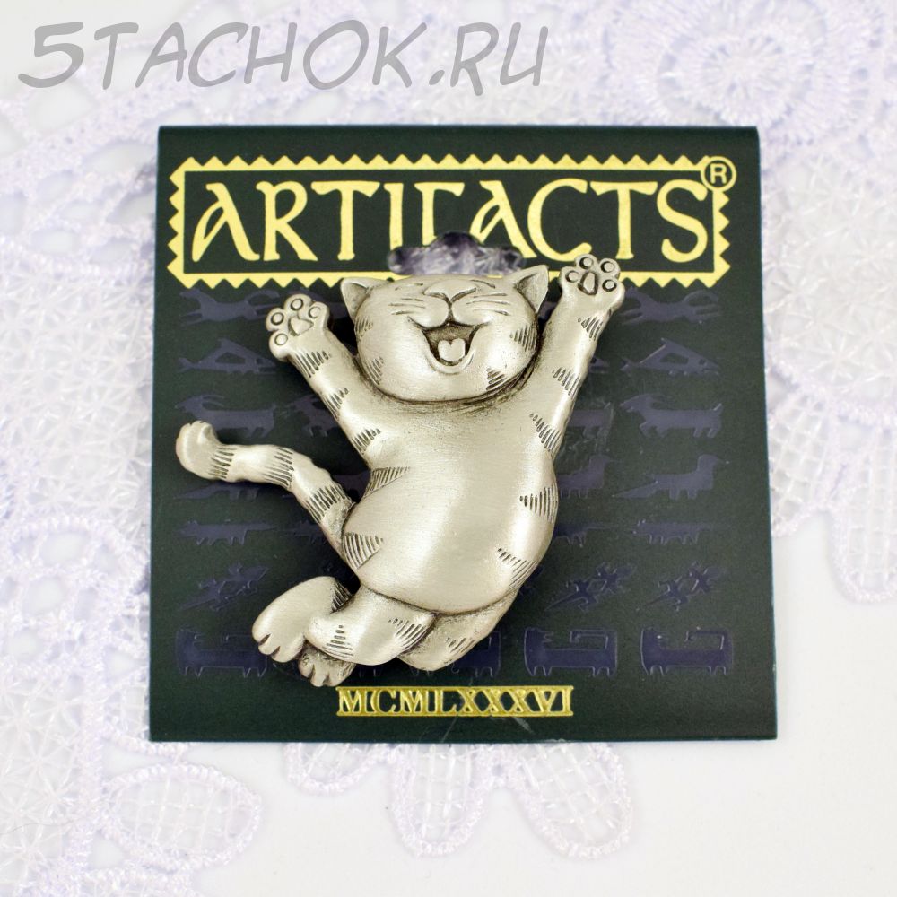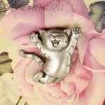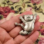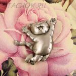 Брошь "Счастливый котик" цвет олова (JJ США)