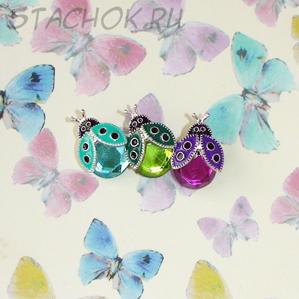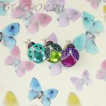 Брошь "Три божьих коровки" под серебро, эмаль, камушки