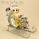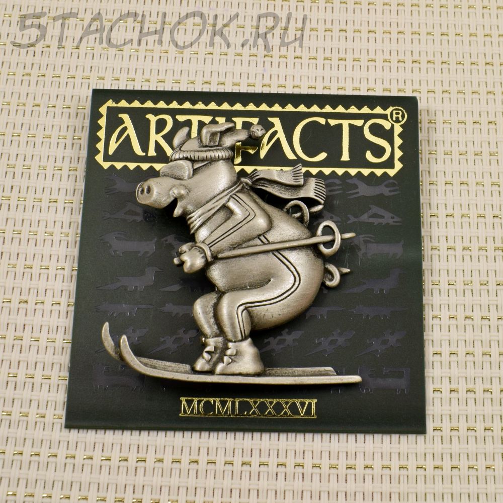 Жизнерадостный спортиный хрюшка в полном горнолыжном обмундировании едет на лыжах с горки!