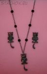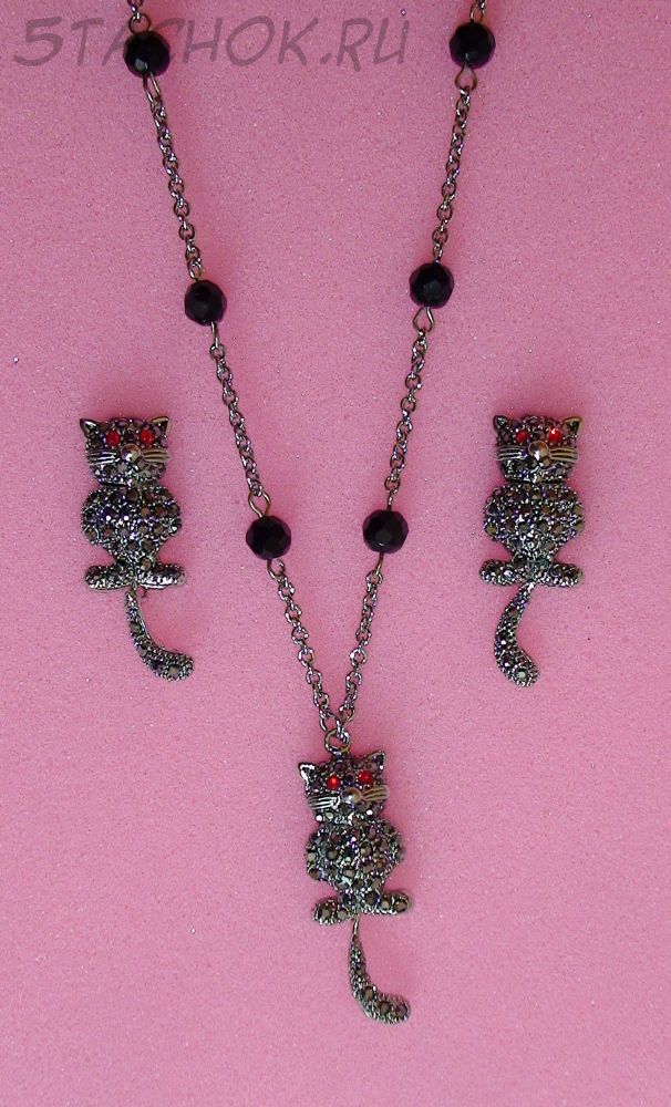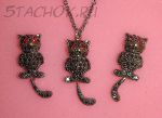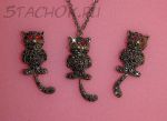 Колье и серьги-гвоздики "Котики с подвижными хвостиками"