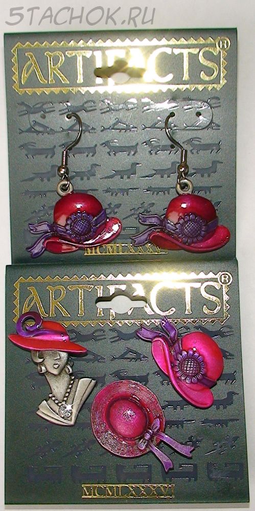 Комплект Серьги и 3 броши "Шляпки, шляпки, шляпки..." под олово, камень сваровски, ювелирная эмаль