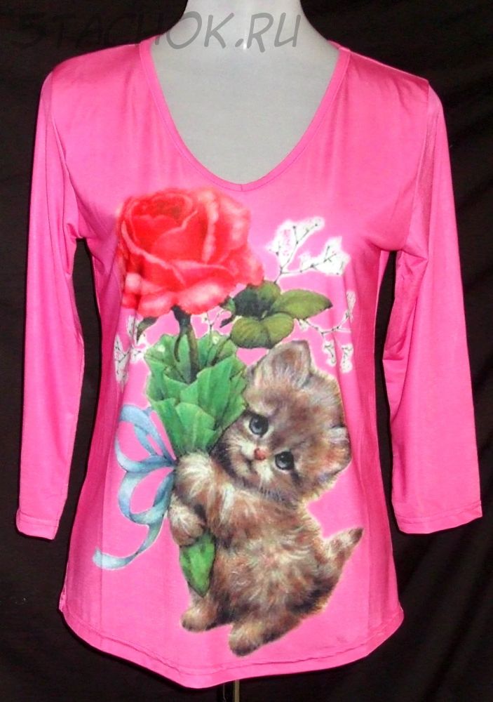 Кофточка с рукавом "Котенок с цветочком"