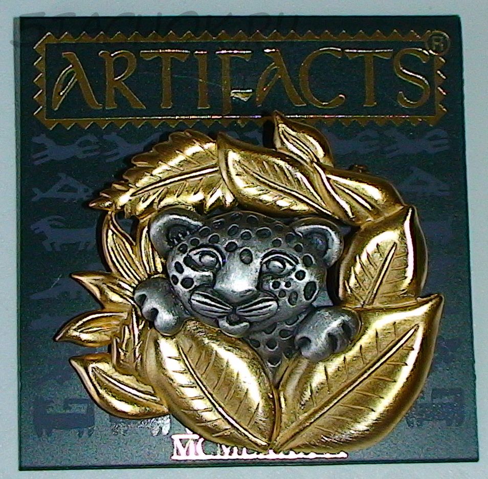 Брошь "Леопардик в джунглях" под олово и золото
