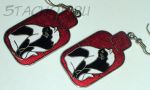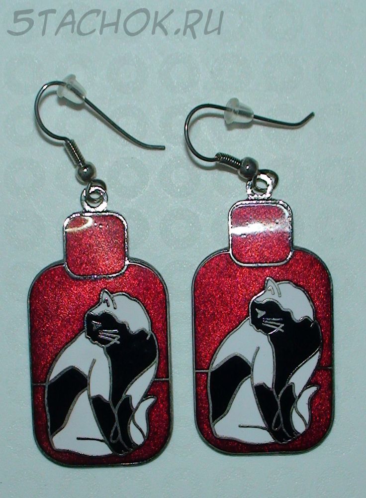 Серьги "Черно-белая кошка на красном" под серебро, ювелирная эмаль