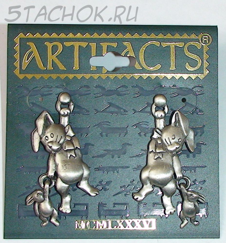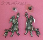 Серьги-гвоздики "Зайка с зайчонком" под олово