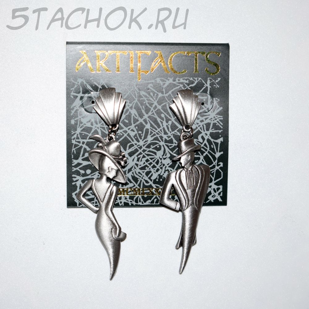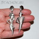 Полный размер серьги с застежкой "Он" и "Она" 2*7.5 см