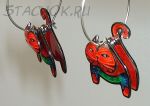 Разноцветная ювелирная эмаль. Три слоя сережки разделены биссером под серебро.