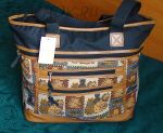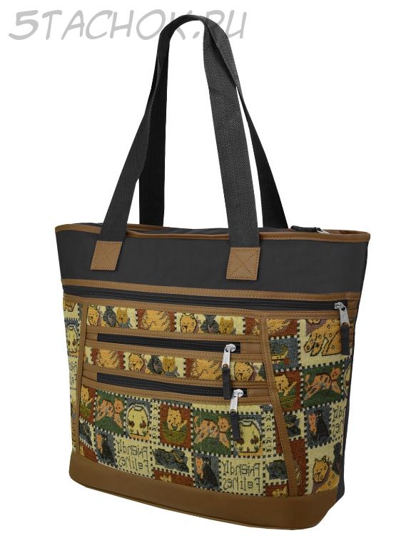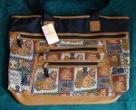 Сумка сшита из плащевки с использованием трикотажной ткани под гобелен, отделка искусственная кожа. Внутри одно большое отделение на замке сверху (помещает 3 комплекта постельного белья!), сбоку на замках большой карман, средний и малый.