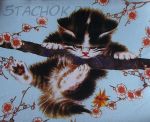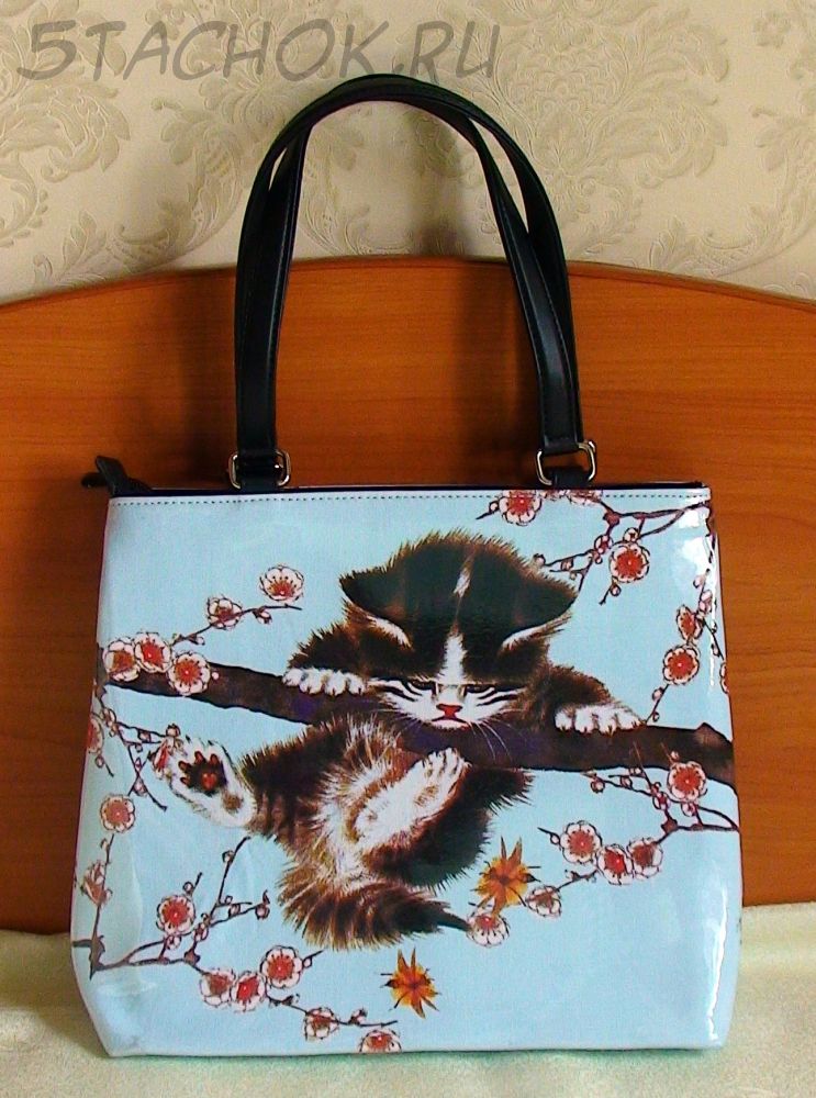 Нарядная, оригинальная сумочка небесно-голубого цвета с милым котенком подойдет как для девушки, так и для женщины.