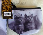 рисунок котят с обоих сторон и на сумочке, и на кошелечке.