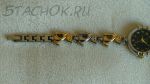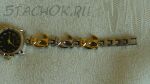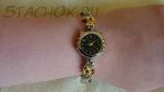 Часы женские "Кошка" золото+серебро черные (на браслете)