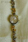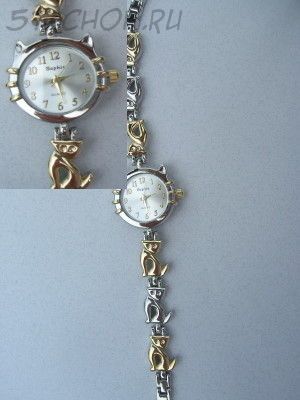 Часы женские "Кошка" золото+серебро светлые (на браслете)