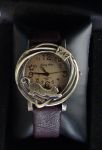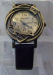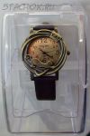 Часы женские "Кошка" под бронзу с коричневым ремешком