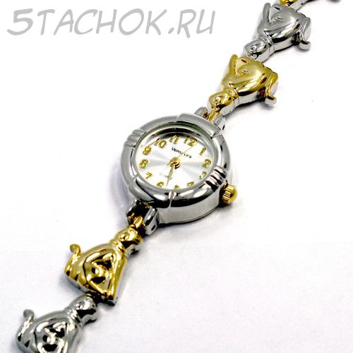 При изготовлении использовался гипоаллергенный металл с гальванопокрытием, что обеспечивает прочность покрытия, а качественный часовой механизм - долгосрочность использования часиков!
